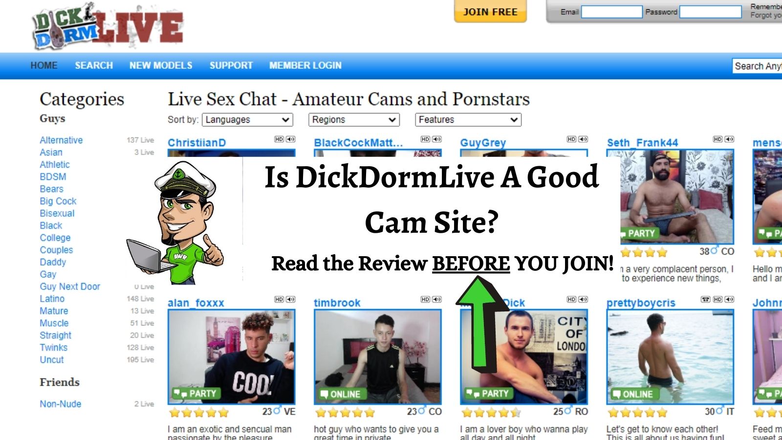 Remember, while this is a dickdormlive.com review the underlining site that really owns the site is Streamate.com and that why we suggest you join there.