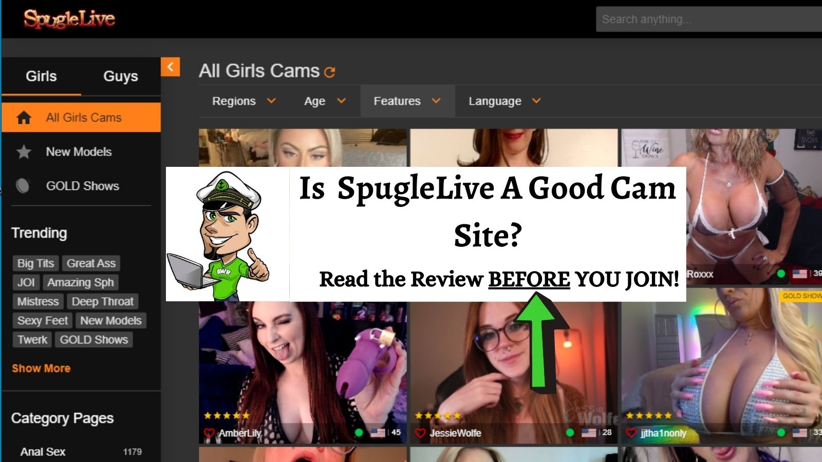 Remember, while this is a spuglelive.com review the underlining site that really owns the site is Streamate.com, and that’s why we suggest you join there.